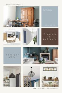 On choisit donc un joli bleu/gris tendance pour donner de la modernité et trancher avec les meubles en bois et on ajoute des luminaires en acier pour ajouter du cachet.