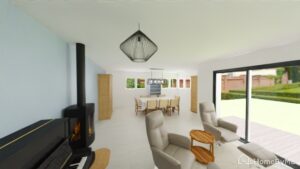Donner un coup de jeune à cette maison à la campagne des années 80 et avoir des idées d’aménagement de l’espace en gardant le mobilier de mes clients.